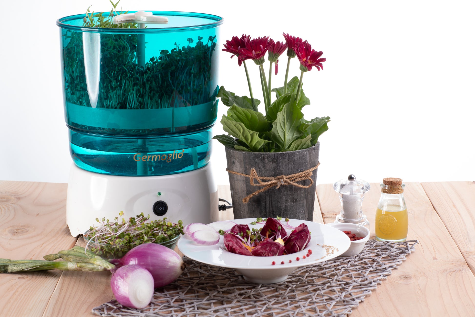 Germoglio will allow you to enjoy fresh sprouts all year round, in just a few passages. Just add clean water and seeds, and Germoglio will take care of the rest: the sprouts will be fully grown in just 3-5 days. They will provide you with a full range of enzymes, vitamins, mineral salts, microelements, amino acids and proteins: pure, green energy at your fingertips!